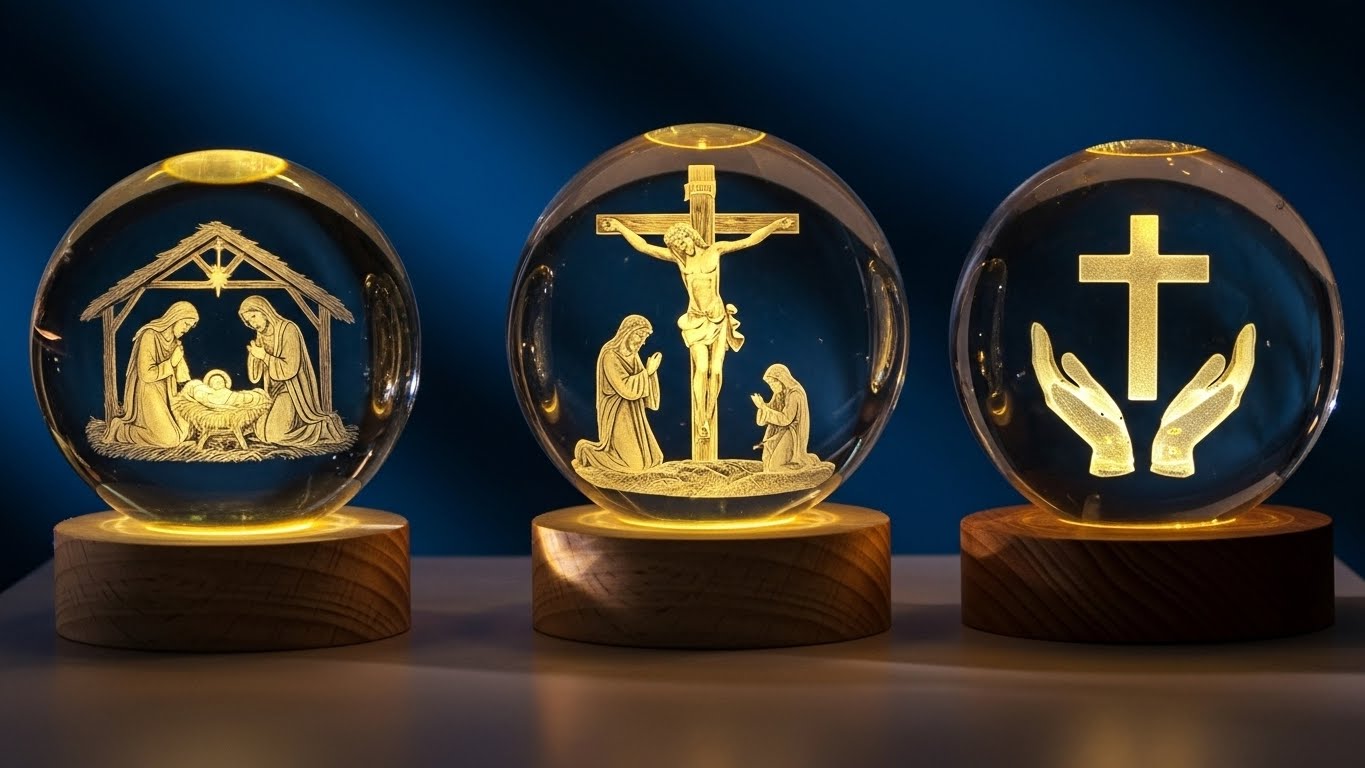 A beautifully crafted crystal cross designed to bring a calm, reverent glow to any space. Its soft illumination creates an atmosphere reminiscent of quiet chapel light — warm, peaceful, and spiritually grounding. Perfect for homes that value serenity and meaningful symbolism