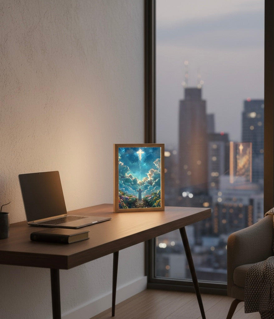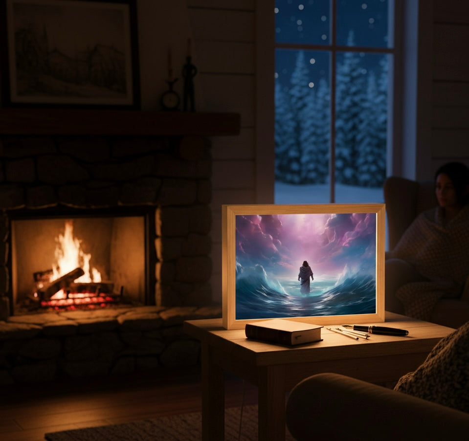 You simply plug the Holy Spirit™ canvas with the USB that comes with it, and turn on the light switch, then your canvas will be lit up with magic